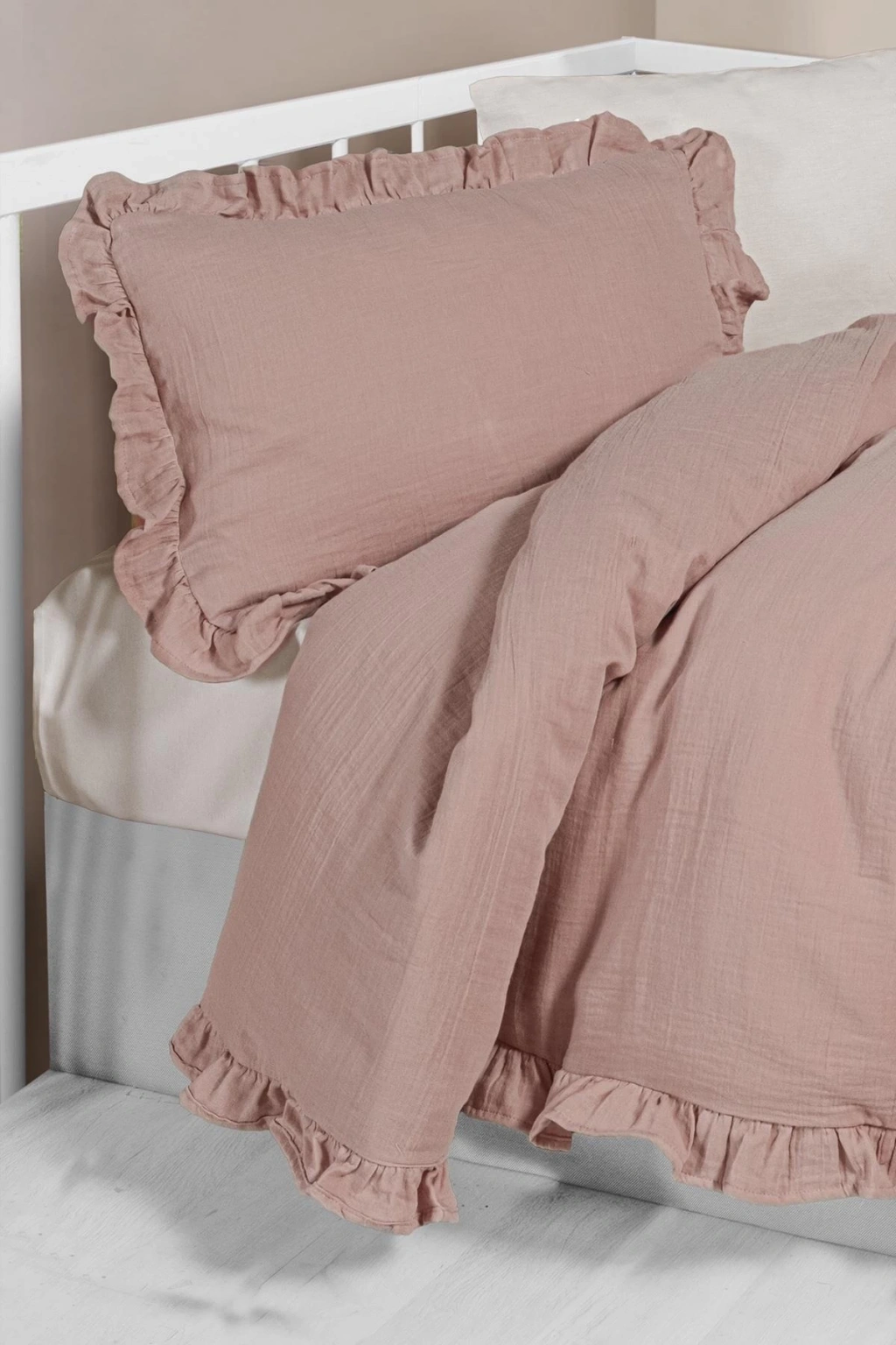 Fırfırlı %100 Pamuk Müslin Bebek Nevresim Takımı – Doğal, Şık ve Konforlu
