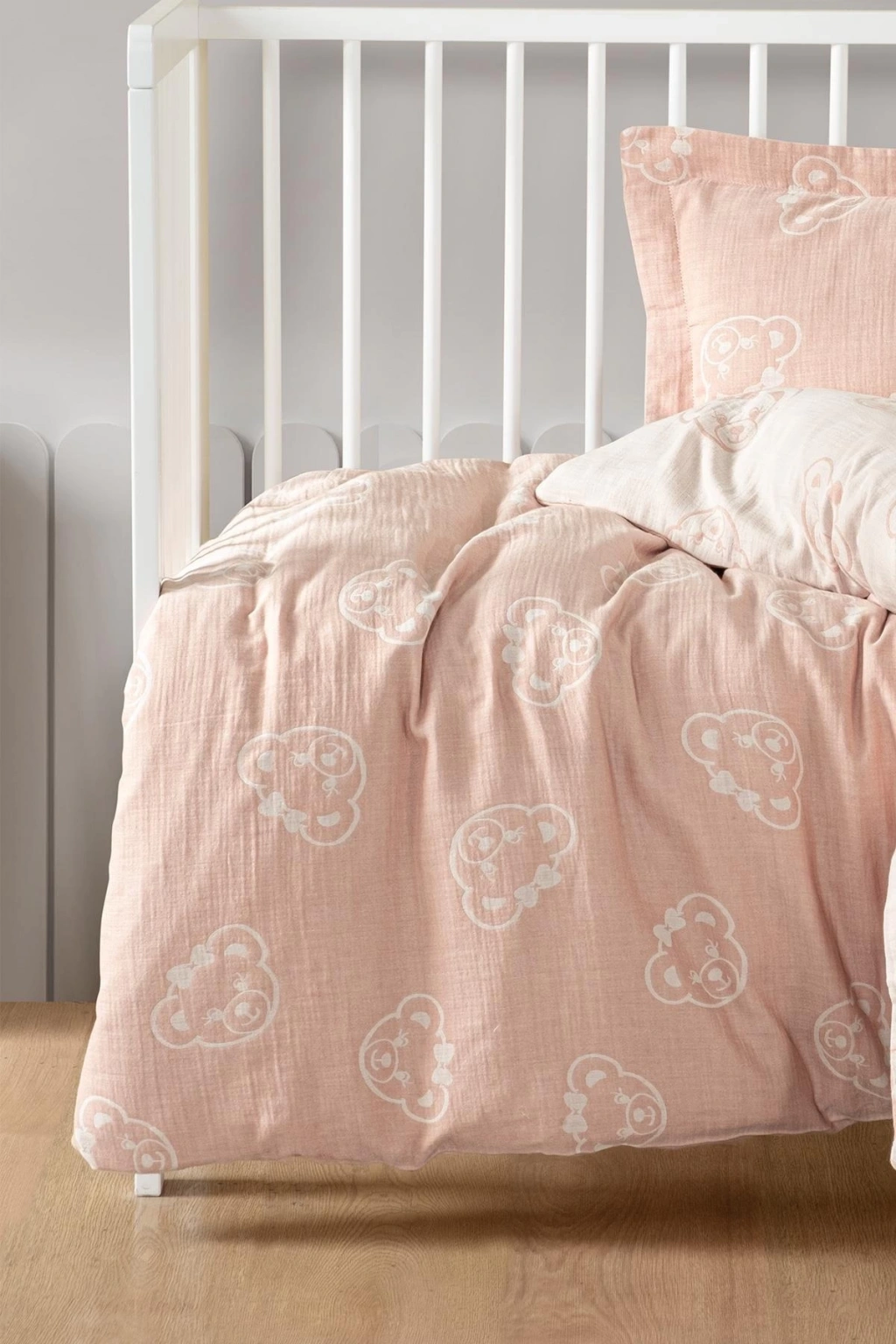 • Kanz Jakarlı Müslin Bebek Nevresim Takımı Knz-013 Bear Pudra