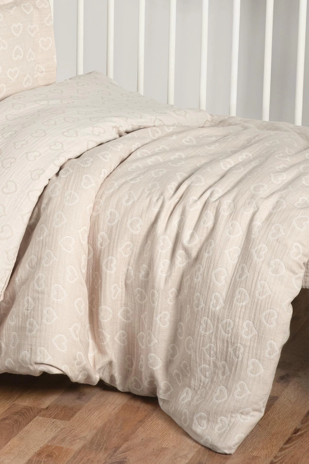 • Kanz Jakarlı Müslin Bebek Nevresim Takımı Knz-013 Heart Kahve
