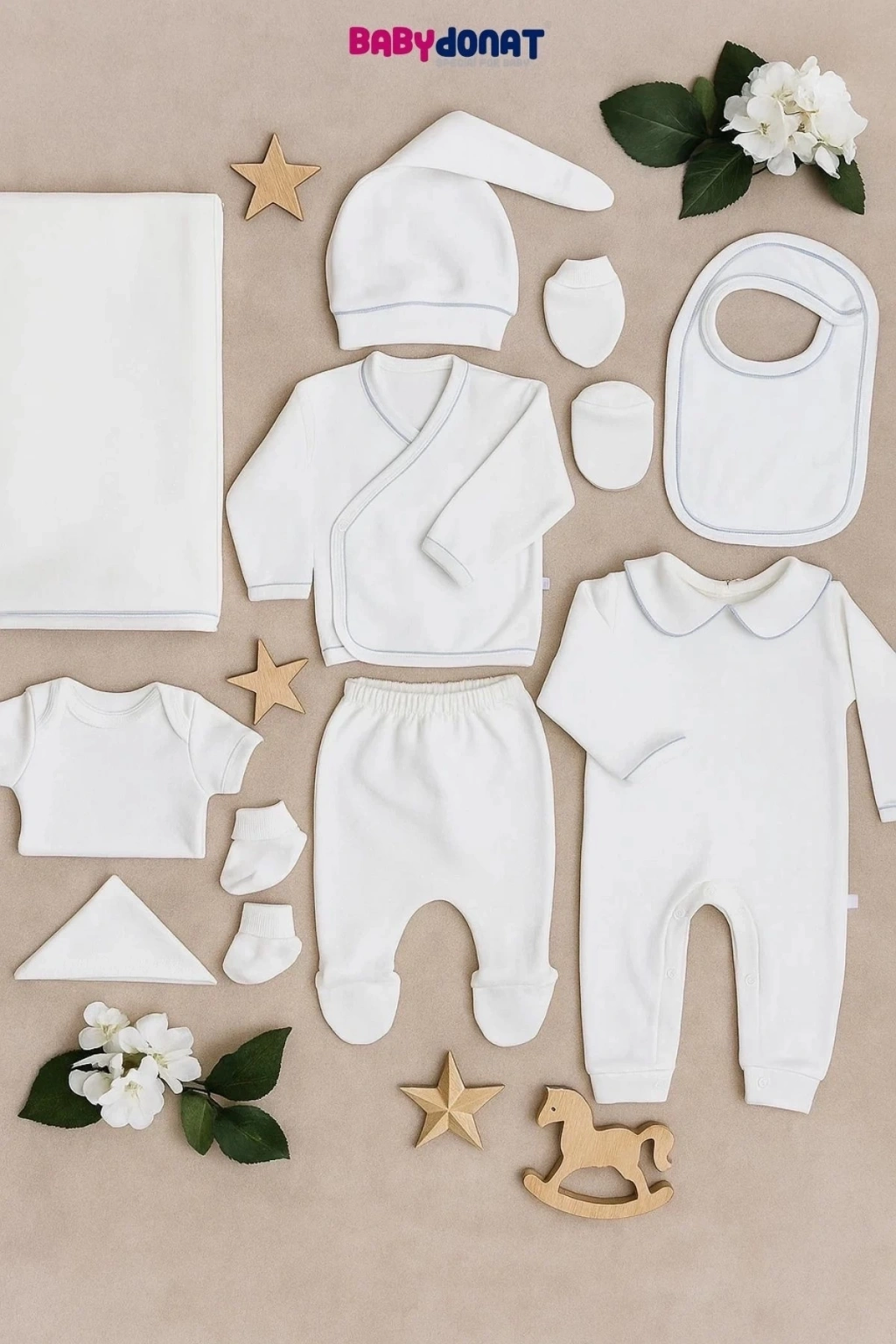 Yaka Detaylı 10 Parça Kutulu Erkek Bebek Hastane Çıkış Seti